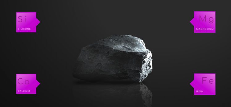Sizilium, Calcium, Magnesium und Eisen, aber auch Titan, Kupfer sowie andere wertvolle Mineralien werden aus dem Meteoritenstaub gewonnen und in den ELIXOO-Produkten verarbeitet.